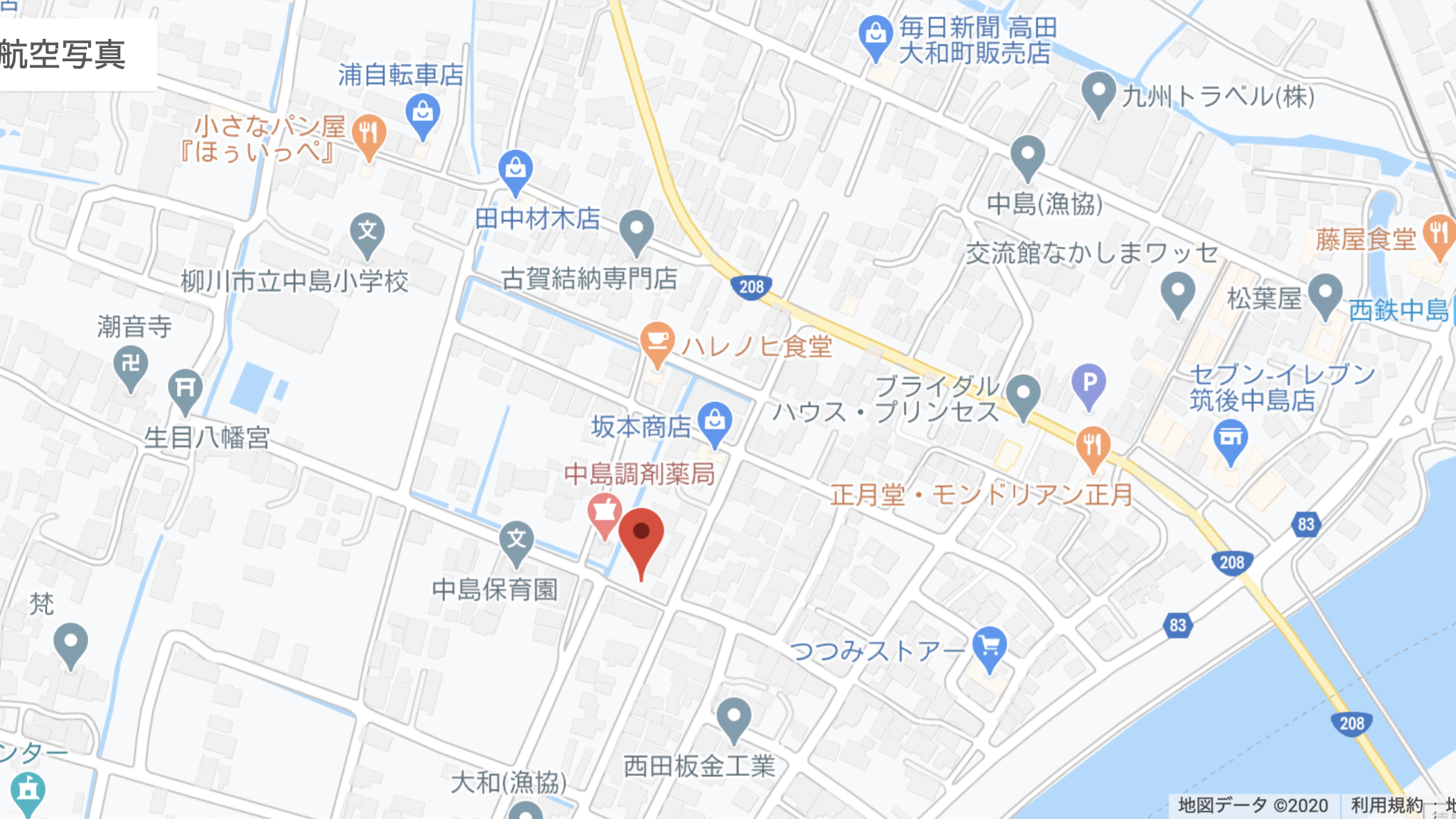 みやま・柳川ICから約15分。国道208号線、中島交差点からお越しください。クリニック前と中島調剤薬局裏手に合わせて20台程度駐車できます。